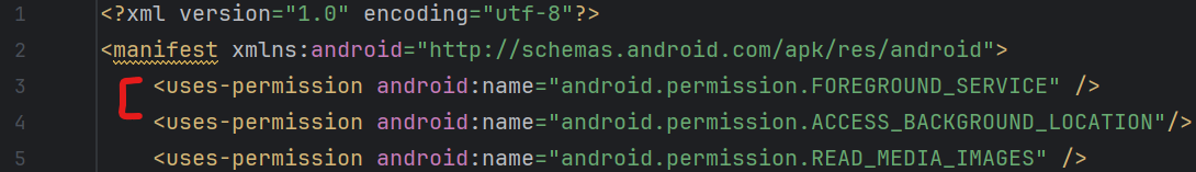 <uses-permission android:name="android.permission.ACCESS_BACKGROUND_LOCATION"/>