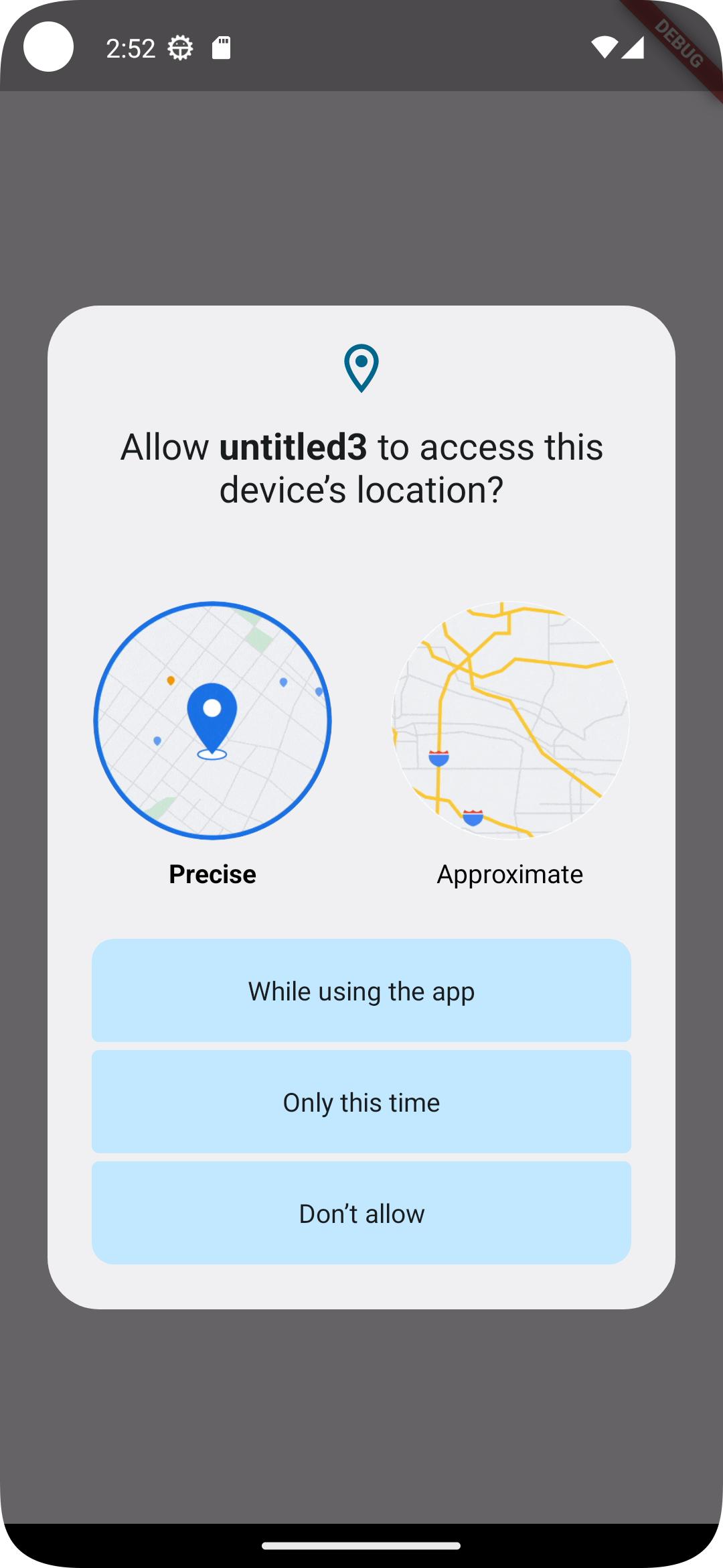 이제 한번 앱을 실행해 보자. 실행해 보면 아래와 같이 정상적으로 권한 요청 팝업이 뜰 것이다.