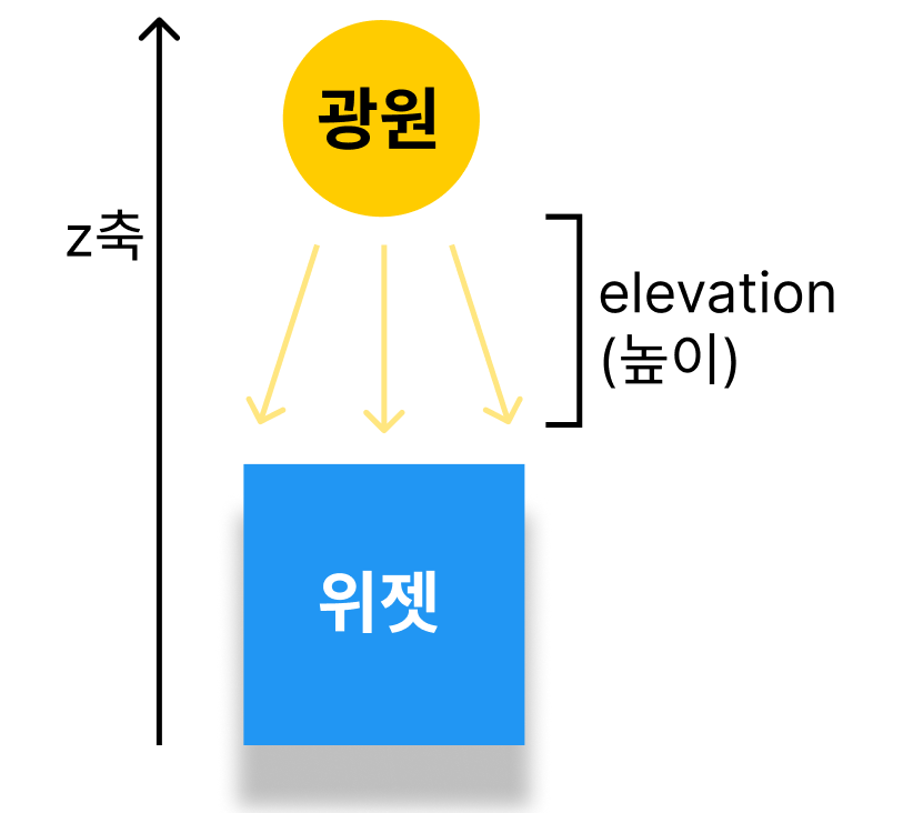 이 elevation 파라미터는 위젯이 화면의 표면으로부터 얼마나 높이 떠 있는지를 나타내는 값으로, 예를 들어 위에 광원이 있다고 해보자.