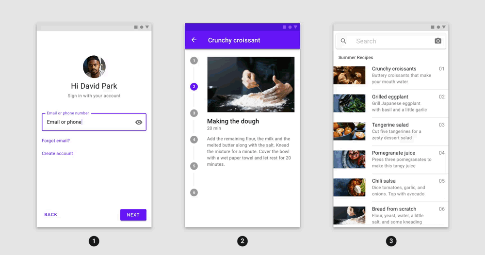 | SharedAxisTransition | X, Y, Z축 중 하나를 기준으로 화면 전환 시 공통 축을 따라 애니메이션이 발생 |