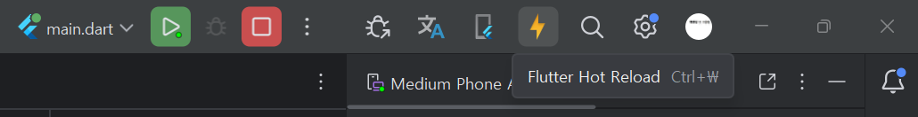 그런데 안드로이드 스튜디오를 사용해서 개발을 하고 있다면 좀 불편함을 느끼는 사항이 있을 것인데 바로 Hot Reload에 지정되어 있는 단축키가 안 먹는다는 것이다.