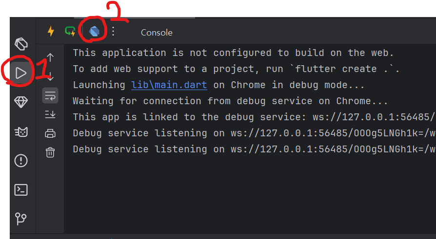 사진에 보이는 것 처럼 왼쪽 툴바에서 Run 탭으로 이동하면 'Open Flutter DevTools In Browser' 이란 게 있는데 이걸 클릭해 주면 브라우창이 뜰 거다. (사실 Flutter Inspector 사용하면 되는데 난 이거 사용을 더 추천한다.)