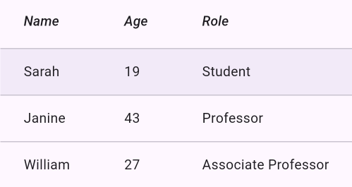 열 크기는 표의 내용에 따라 자동으로 조정됩니다. 이 위젯을 사용하여 많은 양의 데이터를 표시하려면 각 열의 크기를 조정하기 위해 한 번, 그리고 표의 레이아웃을 조정할 때 한 번, 총 두 번 측정해야 하므로 비용이 많이 듭니다.