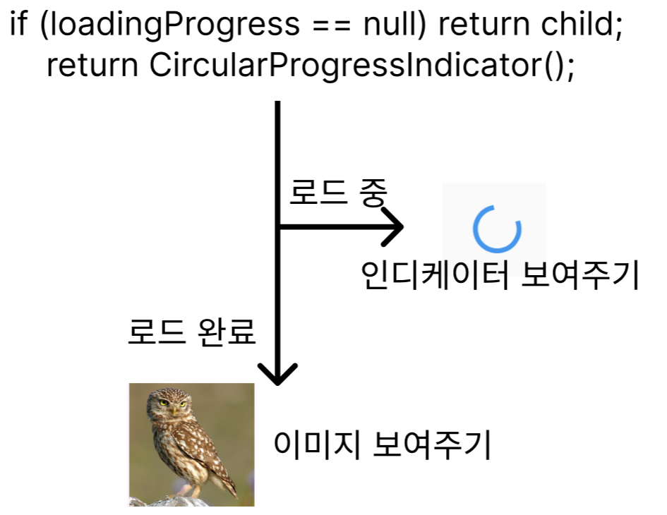 즉 로딩 중일 때는 CircularProgressIndicator를 표시하게 되고 로딩이 완료된다면 child(이미지)를 표시하게 되는 것이다.