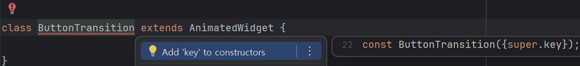 먼저 내가 만든 ButtonTransition은 AnimatedWidget을 상속받은 커스텀 위젯이다. 이제 이 위젯에서 생성자를 전달하게 되는데 이 생성자 안에 들어있는 값으로는 Animation<double> 타입의 width 값을 받은 super(listenable: width) 이 되겠다.